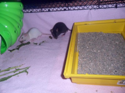 O mesmo tipo de forração dita acima, pode-se usar uma bandeija de gatos mesmo. E usar a forração desejada, pra ensinar eles a usar o banheirinho não tem muito segredo. Geralmente eles escolhem o lugar desejado, daí você apenas coloca a bandeija encima do local desejado por ele. Isto é opcional, mas tem gente que prefere do que deixar tudo esparramado por aí. Lembrando que o ratinho twister não fará 100% das suas necessidades, mas, melhor do que deixar todo o cocô e xixi espalhado pela gaiola não acha?